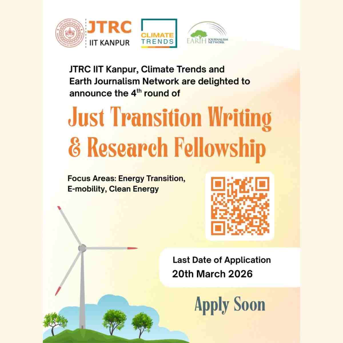 The Just Transition Research Centre (JTRC), Climate Trends, and Earth Journalism Network are pleased to announce the 4th round of the Just Transition Writing & Research Fellowship.